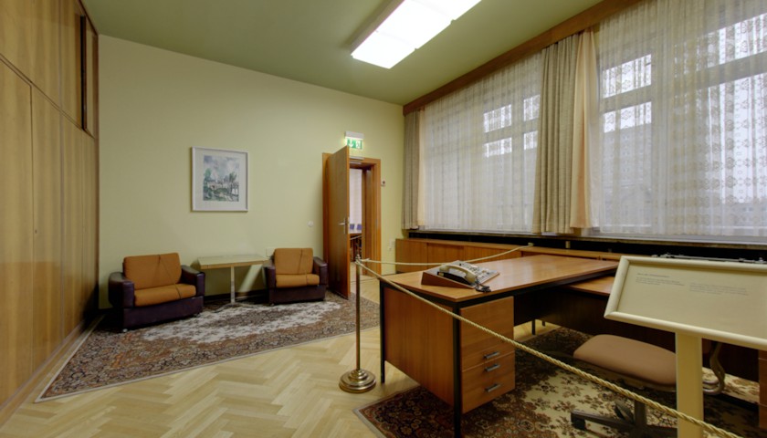 Am authentischen Ort informiert das Stasimuseum über die Biografien der MfS-Minister und zeigt anhand von Originalobjekten wie versteckten Fotoapparaten, Mikrofonen und Waffen, mit welchen Mitteln der DDR-Geheimdienst seine eigene Bevölkerung bespitzelte.